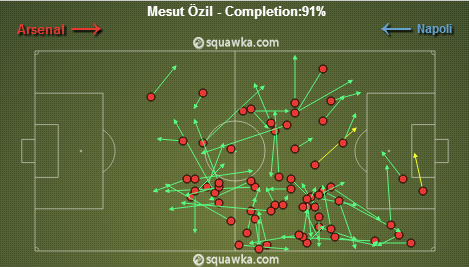 Arteta - 7 - Not at his best, still coming back from injury. Even not at his best he is one of the most consistent players on any football pitch, a 95% pass accuracy is never a bad thing for a central midfielder.